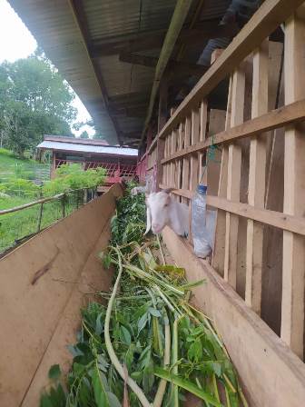 ” Pakan disini cukup melimpah, tidak perlu repot jauh-jauh mencari rumput lagi. Sumber pakan berasal dari kebun hijauan berada di halaman kantor. Ketersediaannya, tentu sangat menunjang pemeliharaan kambing yang diternakan dengan sistem kandang, ” ringkasnya.