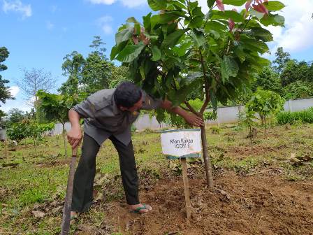 UfukNews. Com, KENDARI – Balitbangtan BPTP Sulawesi Tenggara, melakukan koleksi berbagai klon unggul kakao di Taman Agro inovasi. Hal ini sebagai sarana pembelajaran bagi masyarakat Sulawesi Tenggara, apabila melakukan kunjungan. Tanaman kakao merupakan salah satu tanaman unggulan perkebunan di Sultra yang saat ini, perlu mendapat perhatian untuk ditingkatkan provitasnya.