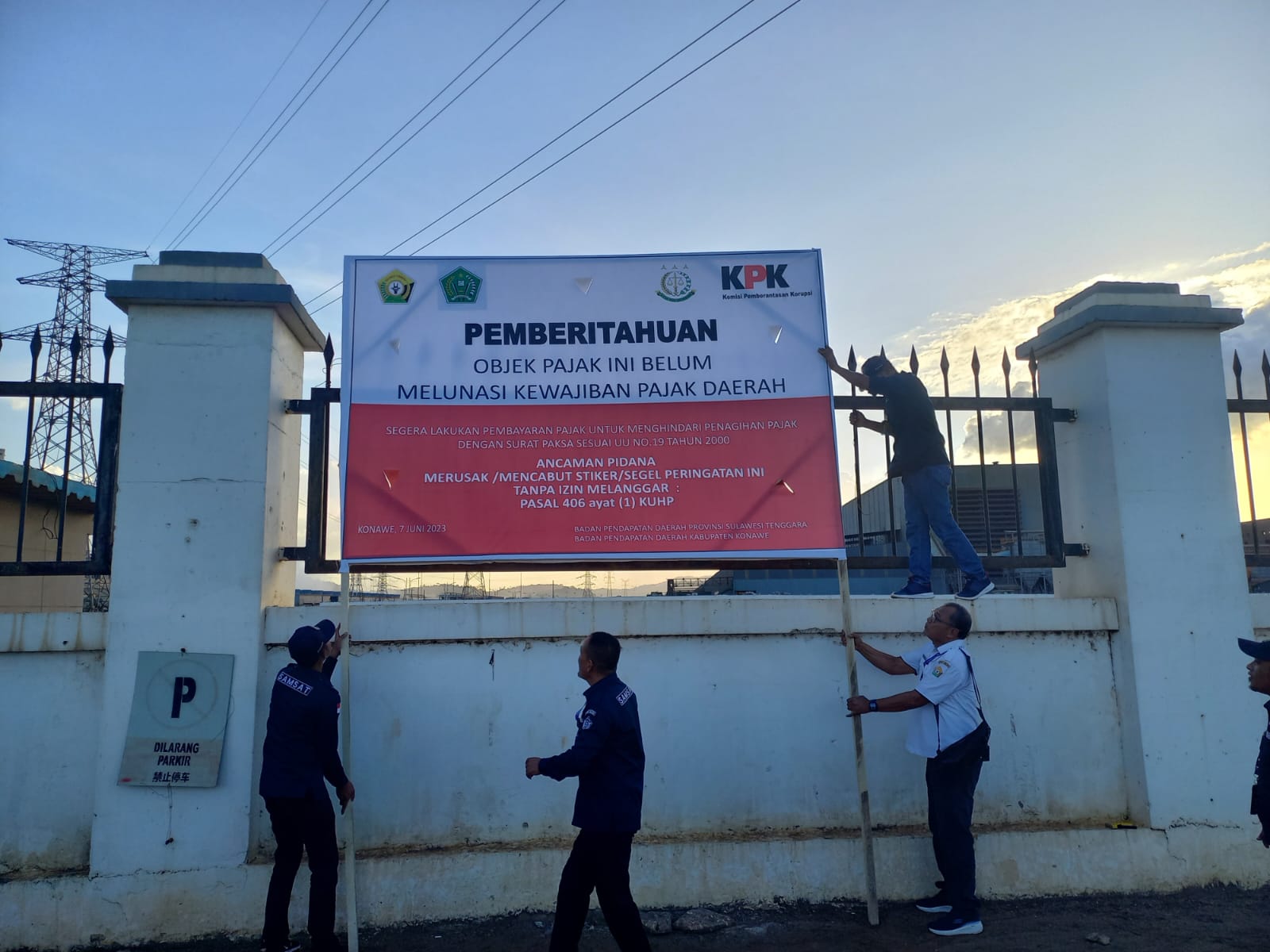 ”Hari ini pemasangan plank tunggakan pajak oleh pemda kami dampingi. Juga ada dukungan dari Kejaksaan Tinggi Sultra. Plank ini menandakan bahwa perusahaan menunggak pajak daerah selama bertahun-tahun,” kata Dian seusai pemasangan plank di Morosi, Konawe.